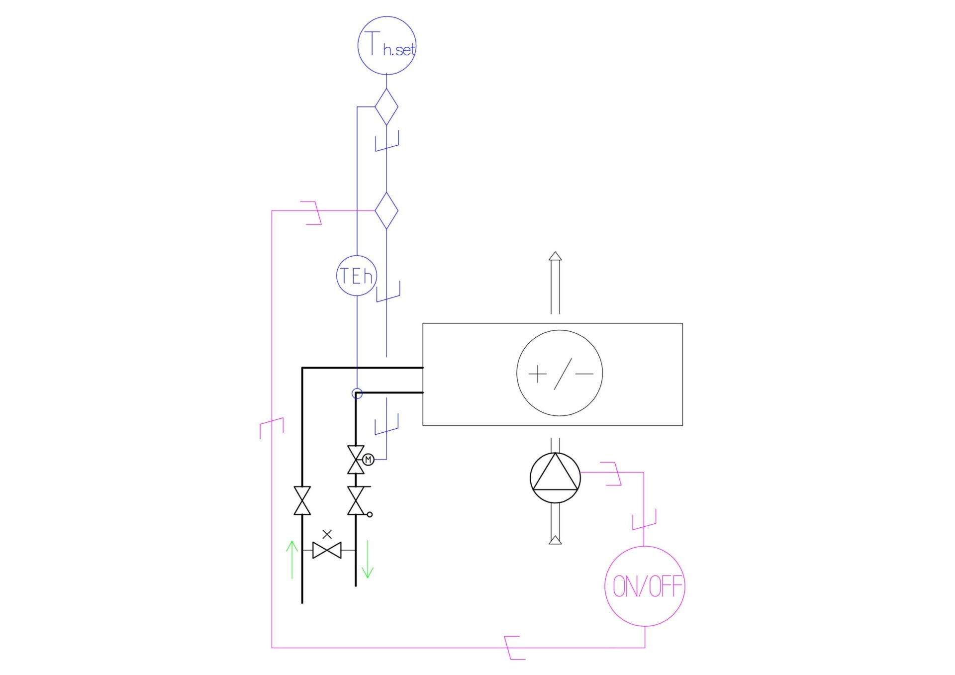 Lämmön talteenotto vaatii automatiikkaa huurtumisen ja jäätymisen ehkäisemiseksi äärioloissa. Liuoskytkentöjä havainnollistavat alla olevat kuvat. Kuvista käy ilmi tehonsäädön ja huurteeneston periaate. Huurteeneston toteuttamiseen on useita vaihtoehtoisia tapoja, alla olevat ovat vain esimerkkejä. Muun muassa lämpötila-, paine-ero- ja aikaohjaus sekä kolmitieventtiili- ja kaksitieventtiiliratkaisut ovat kaikki mahdollisia. Kuvat havainnollistavat myös vain esimerkinomaisesti paisuntasäiliön ja pumpun sijoittamisen. Tarvittavat apulaitteet (venttiilit, ilmaus- ja poistoyhteet yms. putkistovarusteet) on myös esitetty vain esimerkinomaisesti, eli kytkentäkaaviot eivät ole tältä osin täydellisiä.