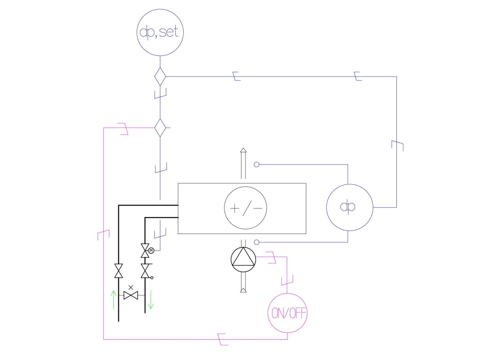 Neulalämmönsiirtimen umpeenjäätymisenesto toteutetaan pysäyttämällä liuosvirtaama määräajaksi ilmapuolen paine-eromittauksen perusteella. Tämä säätötapa on ideaalinen alhaisilla nesteen lämpötiloilla (tuleva neste alle 0 °C) toimivissa jäähdytyspattereissa, joissa jäähdytettävä ilma on puhdasta ja ilmamäärä vakio. Esimerkkinä mainittakoon elintarviketeollisuuden tuotantotilat, joiden sisälämpötila halutaan pitää +2…+6 °C välillä. Edellä mainittujen tilojen jäähdytys toteutetaan usein kiertoilmakoneissa sijaitsevilla jäähdytyspattereilla, joissa jäähdytysnesteen lämpötila on tyypillisesti -10…0 °C