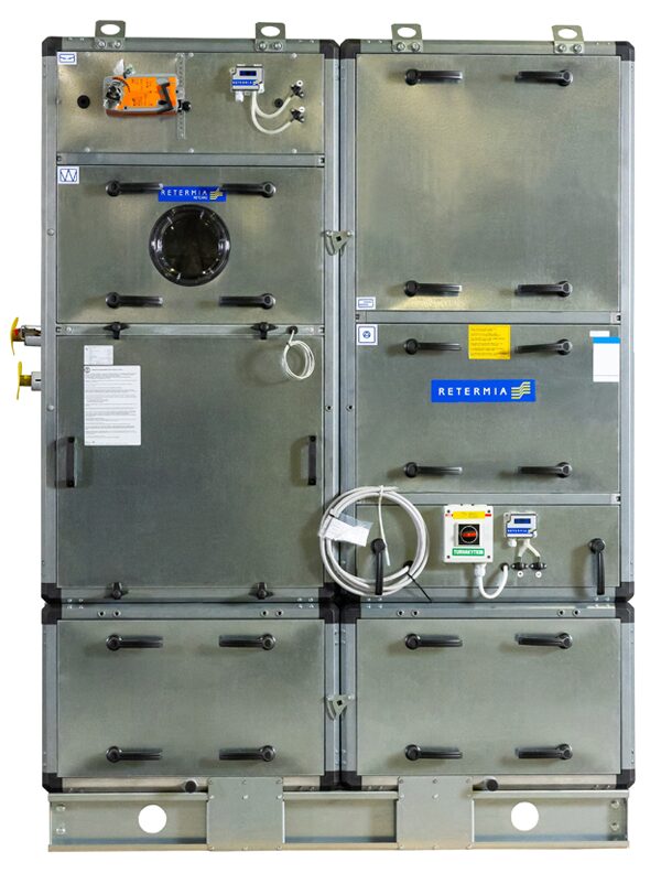 Ilman virtaussuunnassa ensimmäisessä pystyosassa ovat sulkupelti-, suodatus- ja lämmitystoiminnot. Pääsuodattimen suodatusluokka voidaan valita M5-F9 väliltä.