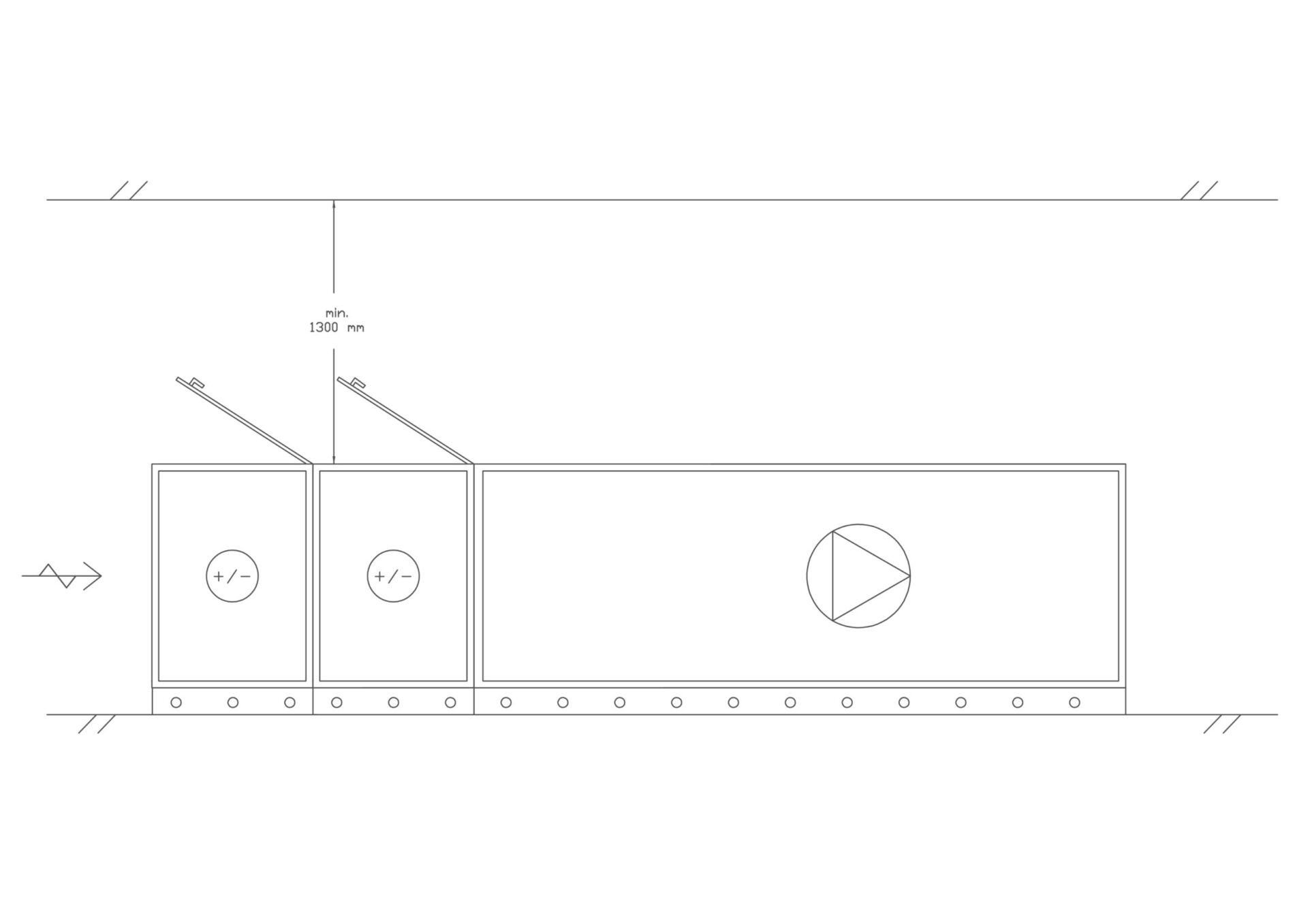 Kaikki toiminto-osat ovat huollettavissa huoltoluukkujen kautta. Huollon suorittamista varten koneen huoltopuolella tulisi olla koneen leveyden verran vapaata tilaa.