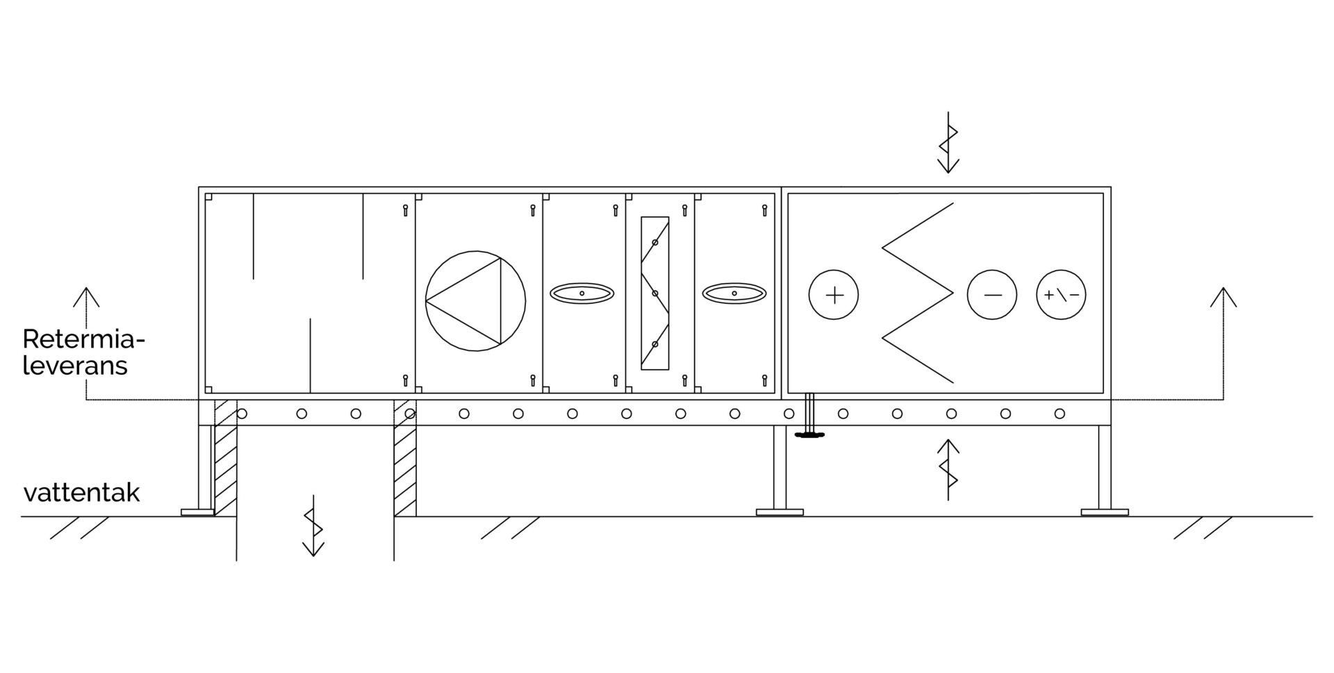 • Besparingar på installationskostnader. RETCARE OUT S -tilluftsaggregat är avsett för installation på ett vattentak. Byggandet av ett maskinrum undviks. Aggregatet har en kompakt design och värmeförlusterna över höljet minimeras.