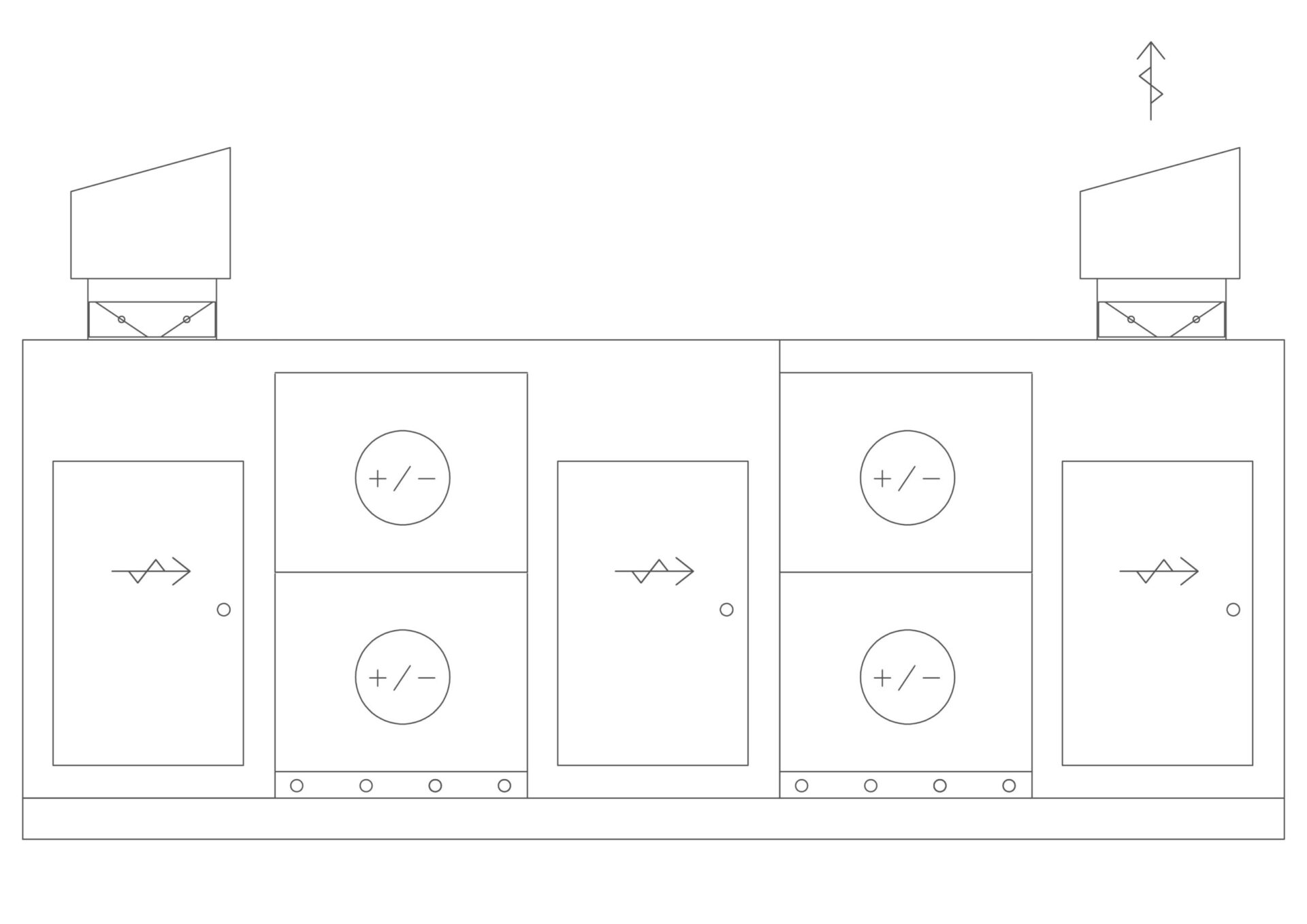 LTO-neulalämmönsiirrinseinien sijoitusperiaate ilmanvaihtokonehuoneessa.